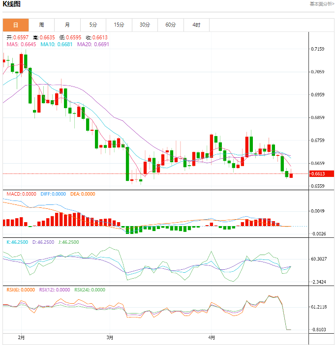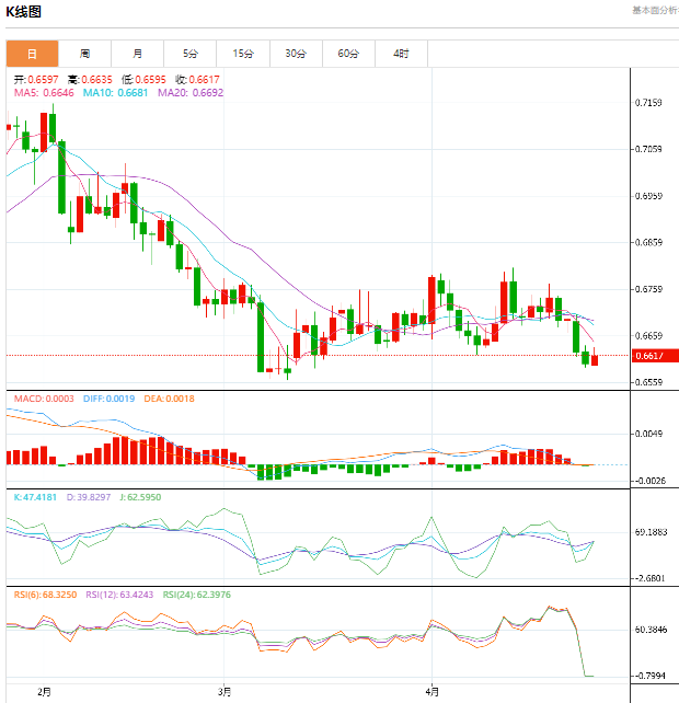 澳元今天处于积极区域,结束了100点的讨厌的下滑,并跌至6周低点。澳元报0.6621,当日上涨0.28%。美国发布GD和失业救济金。 澳大利亚通胀支持澳洲央行暂停行动 第一季度通胀率的下降让澳大利亚储备银行的决策者们喜出望外。以至于人们对澳大利亚央行在连续10次加息后很可能已经结束了当前