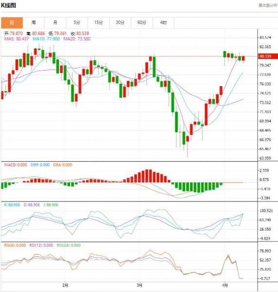 今日晚间周二,原油报80.561/80.601。黄金报2001.42/2001.72。星期二(四月十一日)在亚欧交易时段,美油价格微涨,美元指数回吐了隔夜的大部分涨幅,为油价提供了支撑,同时亚洲大国出台经济刺激措施的预期也提振了市场信心。 原油盘面分析 原油未能利用上周OC+宣布后的价格跳升,因为价格在没