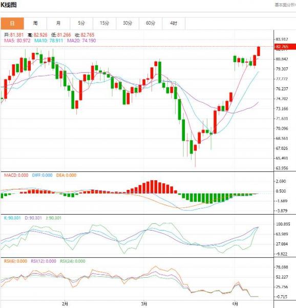 今日晚间周三,原油报80.561/80.601。黄金报2001.42/2001.72。星期三(四月十二日)亚欧时段,美国原油小幅走高,不仅守住了隔夜的全部涨幅,还一度触及每桶81.83美元的近两个半月高点。 原油盘面分析 原油隔夜上涨可能归因于美元普遍走软,美国国债收益率波动在硅谷银行金融等公司倒闭后的几周过