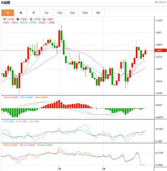 周二盘中,截止目前,欧元/美元货币对1.0827/1.0826,上升至0.0029,增幅0.26%。央行政策风向转变应利好欧元/美元。随着市场对央行的广泛关注转向降息,欧洲央行3月加息50个基点提醒市场:欧洲利率目前不会转向。 除非银行业出现明显恶化,信贷条件过度收紧,否则欧洲央行的利率有可能达到3.75%的