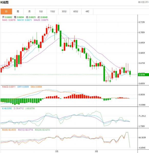 周五盘中,截止目前,澳元/美元货币对0.6649/0.6647,下跌至0.0033,跌幅0.49%。澳元兑美元劲扬,美元疲软和股市反弹提供支撑,澳元兑美元亚洲盘飙升,美元在美联储会议后扩大跌幅。目前澳元兑美元上涨0.76%,报0.6731,美联储鸽派加息给澳元提供上涨机会。 阻力位在200日均线0.6759,周三上涨未能突破