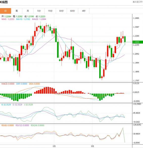 周五盘中,截止目前,英镑/美元货币对1.2226/1.2225,下跌至0.0060,跌幅0.49%。英镑/美元仍在1.23下方,尽管英国零售销售远优于预期。尽管英国2月零售销售较前月增长1.2%,好于预期的增加0.2%,但英镑仍在1.2300下方。 1.2263是亚洲盘低点(因日元走强),也是周四的低点。英国央行加息后的高点是1.2336