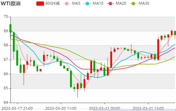 周二(3月21日)欧洲时段,国际油价回补日内全部跌势并转升,尽管延宕逾一周的全球银行业动荡持续打压市场信心,但有机构认为银行业危机对需求影响不大,上半年全球仍面临供应短缺,油价将有5-10美元/桶的上涨空间。 北京时间16:43,YX原油期货上涨0.97%至68.47美元/桶;IC布伦特原油期货上涨0.86%至7