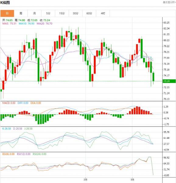 周二(3月14日),国际油价下跌逾1%,延续了前一天的跌势,因为硅谷银行倒闭震撼市场,引发投资者对新一轮金融危机的担忧,经济活动预期减弱将减少石油需求。YX原油下看71.90美元。 北京时间16:49,YX原油期货下跌1.76%至73.37美元/桶;IC布伦特原油期货下跌1.76%至73.37美元/桶。 今