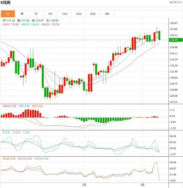 周三盘中,截止目前,美元/日元货币对137.28/137.27,上升至0.11,跌幅0.09%。德意志银行预测,如果日本央行此后进入货币政策“正常化”周期,结束其数十年来始终维持的超低利率政策,而同时美联储则在加息到峰值后进入新的降息周期的话,那么日元汇率将出现扶摇直上的走势。美元兑日元汇价将从当前的136重挫至85,这