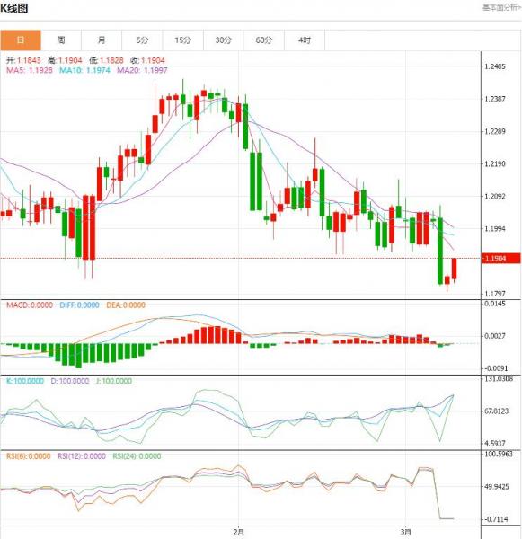 周四盘中,截止目前,英镑/美元货币对1.1902/1.1900,上升至0.0057,增幅0.46%。英镑/美元位于200日均线下方时下行风险增加。 英镑/美元在周二下滑之后,到目前为止只出现了温和的调整。更多的挤压可能使日线趋势阻力重新发挥作用。从该线做空,目前为1.1993,并设置密集的止损单,该线始于2月2日高点1.