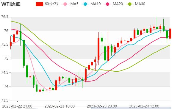 今日晚间周五,原油报76.04/76.08。黄金报1815.81/1816.13。星期四(2月23日)油价收盘上涨2%,市场推测三月份俄将大幅减产,然而,美元走强,以及美国库存大幅飙升使得对需求的忧虑更加恶化了。瑞银分析师表示,预计俄罗斯产量下降和亚洲经济重新开放将收紧石油市场并支撑价格。 原油盘面分析 WT
