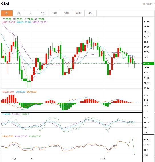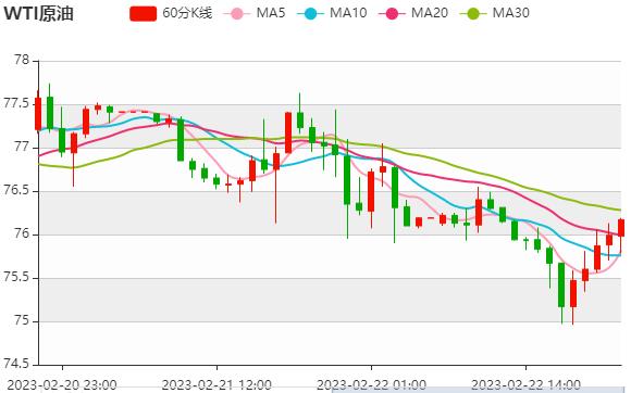 今日晚间周二,原油报76.72/76.76。黄金报1836.60/1836.95。星期二(二月二十一日),美国原油在亚洲时段震荡走弱,因市场对终端利率上升的预期以及美联储加息时间更长加剧了经济衰退的担忧,并打压了原油需求预期,而相对强势的美元也打压了油价。 原油盘面分析 在疲软的欧洲制造业活