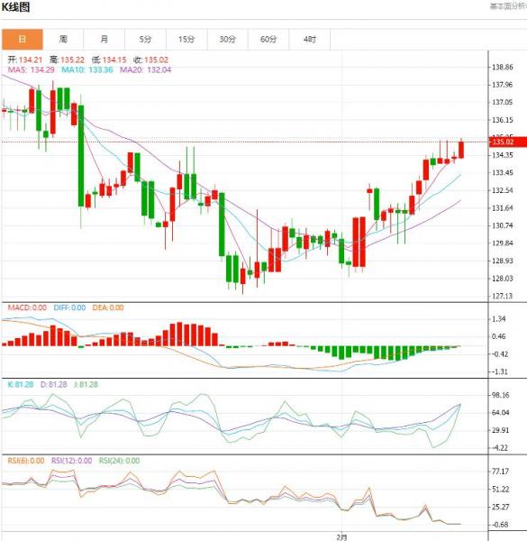 周二盘中,截止目前,美元/日元货币对135.04/135.03,上升至0.84,增幅0.62%。非美货币走低,美元兑日元UD/JY短线上扬近40点,报135.20;欧元兑美元UR/UD短线下挫20点,报1.0650。 货币对:美元/日元 行情分析:汇价高见135.22,低见134.15。上一交易日,汇价收于134.19。基本面上看,周一受