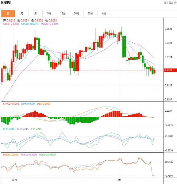 周三盘中,截止目前,欧元/美元货币对1.0646/1.0646,上升至0.0001,增幅0.01%。IFO指数弱于预期,引发更多欧元/美元卖盘。 德国2月IFO企业景气判断指数为91.1,预估为91.2,前值90.2;2月IFO企业现况指数为93.9,预估为95.0,1月为94.1。周二欧元/美元未能因数据改善而反弹。 货币对:欧