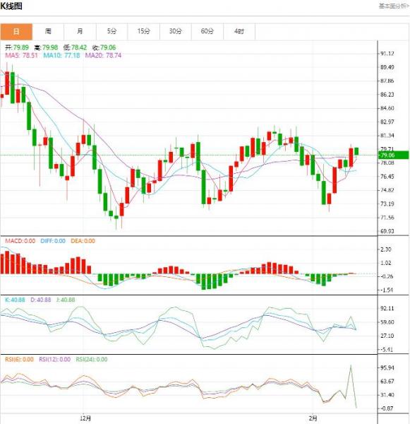 今日晚间周五,原油报79.27/79.31。黄金报1866.39/1866.77。星期五(二月十日)亚洲时段,美国原油窄幅波动。美元在前一交易日触底,给油价带来压力。此外,美国原油库存升至20216月以来的最高水平,这也继续打压多头的士气。然而,对中国燃料需求强劲复苏的预期还是支撑着油价。 原油盘面分析 油