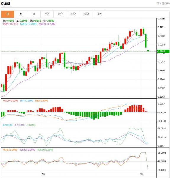 在经历了悲惨的一周结束后,澳元周一持稳,交投于0.6912。 美国1月非农就业数据井喷,令市场震惊。经济创造了惊人的517000个新工作岗位,超过了185000的估计,远高于之前的260000。失业率从3.5%降至3.4%,为1969年以来的最低水平。I服务业采购经理人指数从49.2升至55.2,高于预期的50.4点,因此有更多利好消
