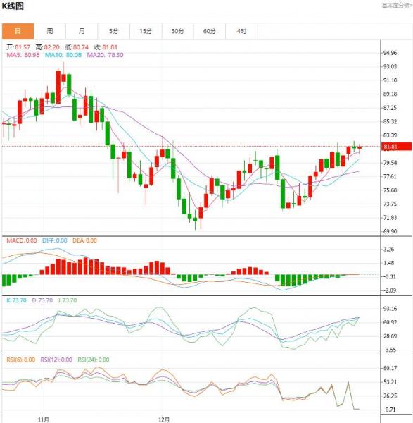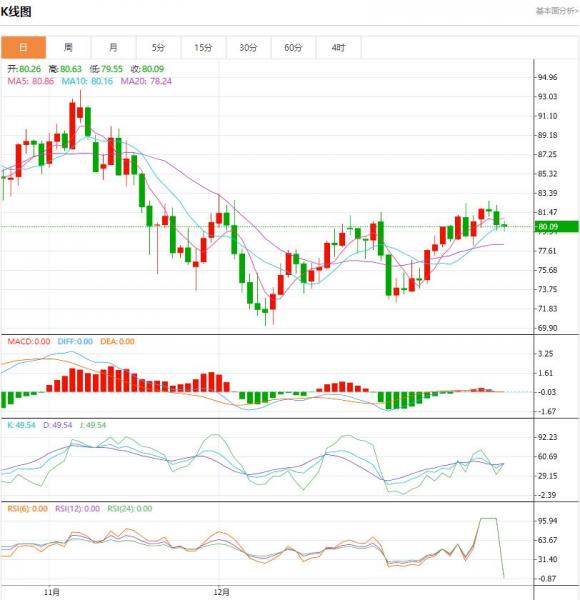 今日晚间周三,原油报79.78/79.82。黄金报1936.92/1937.25。现货黄金,最新报.77美元/盎司,日图跌0.90%。COX黄金期货主力最新报1921.00美元/盎司,日图跌0.74%。周三(1月25日),国际油价承压,尽管中国需求复苏的乐观情绪以及对主要生产国将维持当前产量政策的预期利好油市,但美国石油库存增幅超出预期阻碍了油价