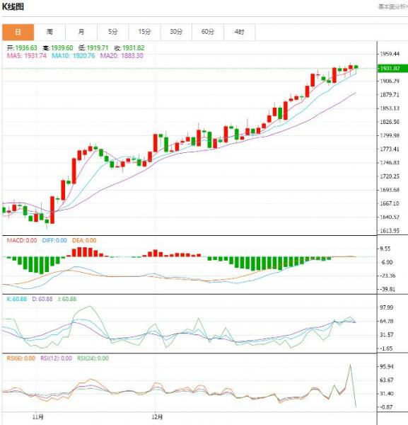 周二(1月24日),现货黄金创去年4月下旬以来新高至1942.39美元/盎司。市场继续强化美联储加息路径放缓预期,投资者关注本周稍晚即将公布的美国四季度GD经济数据。但日内公布的英国1月I数据不佳,导致英镑短线大跌并利好美元,限制了金价升势。 北京时间19:38,现货黄金上涨0.28%至1936.43美元/盎司;C