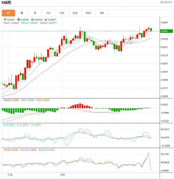 新西兰元周三承压。欧洲时段,纽元/美元报0.6478,下跌0.41%。 市场关注新西兰 新西兰元对今天公布的CI反应消极,下跌多达0.60%,随后收复失地。第四季度CI保持在7.2%不变,高于市场预期的7.1%。更重要的是,该数据低于新西兰储备银行预测的7.5%,这可能意味着央行将放慢加息步伐。