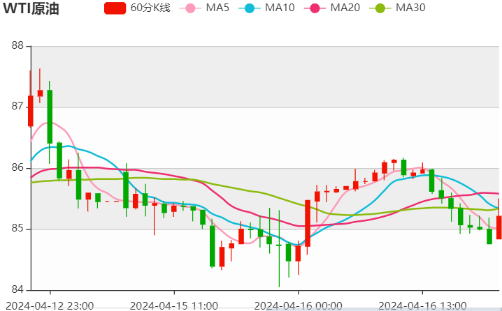 原油价格在经历了自今年2月以来的大幅上涨后,似乎已见顶。尽管地缘政治、供应限制和美国经济持续走强带来了一些强劲的推动力,但油价仍无法继续走高。 今日原油价格技术分析: 原油周二下行,日线收阴于85.2,从日线看油价还将继续下跌,下方关注84的突破情况,四小时线,呈区间震荡,小时线,布