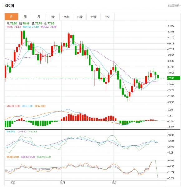 周四(12月29日),国际油价跌近2%,因美国原油库存降幅不及预期,北极寒流迫使炼厂设施停摆,抑制了原油需求。并且俄罗斯禁止向遵守价格上限的国家出口石油,此举可能影响有限。 北京时间16:41,YX原油期货下跌1.96%至77.39美元/桶;IC布伦特原油期货下跌1.92%至82.38美元/桶。 IG市场