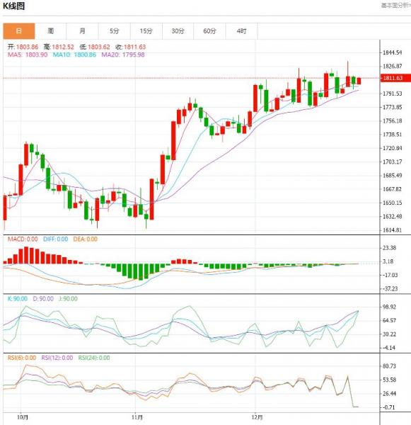 周四(12月29日),现货黄金重新走高,因美元指数走软。市场参与者期待美联储在来年进一步软化鹰派姿态,这增加了非孳息资产黄金的吸引力。机构认为,金价将在2023年升破2000美元。 北京时间19:20,现货黄金上涨0.10%至1805.96美元/盎司;COX期金主力合约下跌0.17%至1812.7美元/盎司;美元指数下得0.22%
