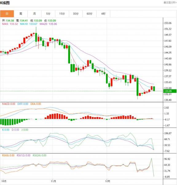 日元周四上涨,抑制了美元本周超过1%的涨势。在欧洲时段,美元/日元交易于133.64,下跌0.60%。 本周的特点是流动性低,许多交易员在年底结账或休假。日本市场整周开市,美元/日元比其他主要货币表现出更大的波动。 日本央行捍卫收益率曲线目标 在经济数据较少的一周内,日本