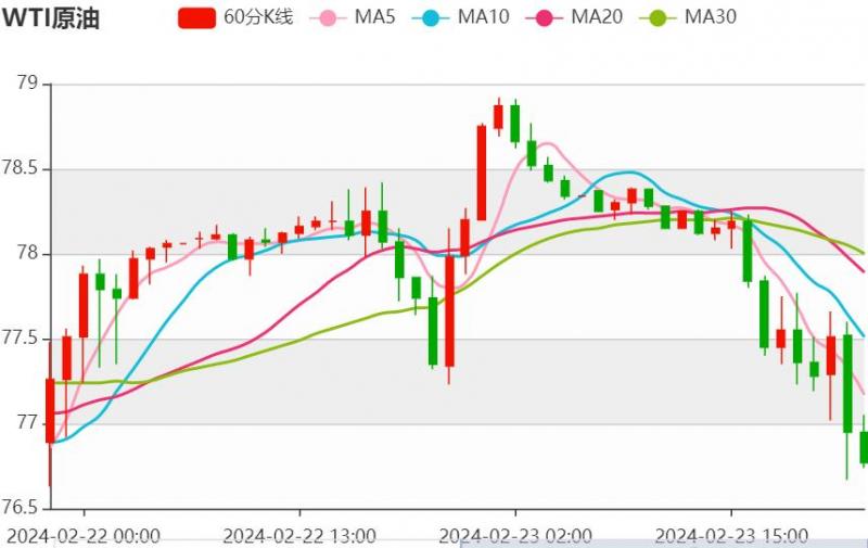 油价周五下跌,此前美联储理事沃勒表示至少应再推迟两个月降息。但需求稳健的迹象和供应担忧可能会在未来几天提振油价。美国西德克萨斯中质油(WTI)期货合约CLc1可能会重新测试每桶78.80美元的阻力位,突破该阻力位可能会涨至79.39-79.79美元的区间。 今日原油价格技术分析: 油周四