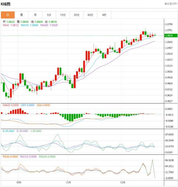 周三盘中,截止目前,欧元/美元货币对1.0615/1.0614,下降至0.0008,跌幅0.08%。周三上午以德国GfK1月份消费者信心数据(见下方的经济日历)拉开序幕,该数据超出预期,表明连续第三次印刷的前景更为乐观。随着今天美元走高,欧元/美元已设法利用这一经济数据暂时保持绿色。 货币对:欧元/美