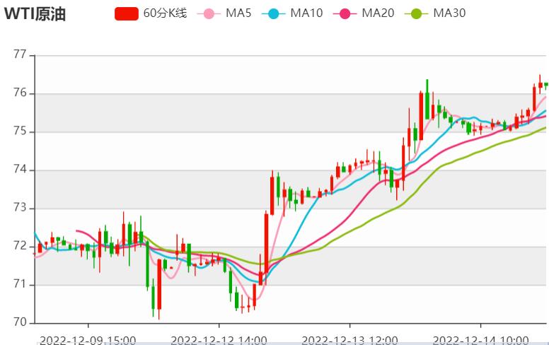 周三(12月14日),国际油价总体持稳,行业数据显示美国原油库存意外增加,这加剧了人们对需求疲软的担忧。但OC上调明年需求预期和供应趋紧限制了油价下行空间。美联储成功实现美国经济软着陆预期有望平衡油市。 北京时间16:21,YX原油期货上浮0.09%至75.46美元/桶;IC布伦特原油期货下跌0.06%至80.