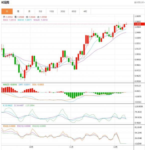 欧元/美元在欧洲早盘交易中继续走高,因为关键的美国数据即将发布。在今天的美国数据和下周的央行会议之前,欧元/美元表现喜忧参半,前两天下跌后上涨两天。 美元指数昨日继续下跌,欧元多头占据上风,欧元兑美元创下自6月24日以来的最高日收盘价。美元在12月有走软趋势,而昨日市场情绪略有改善,避险