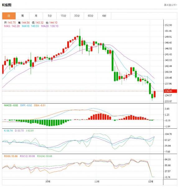 日本首相提升未来5年防卫费至43万亿日元,据日本时事通信社当地时间12月5日消息,日本首相岸田文雄当天做出相关指示,将从下一财年开始,将5年防卫费用提升至43万亿日元。 美元/日元技术分析 在跌破Ichioku云后,美元/日元在周五触及3个月低点133.63时展开看跌。该水平可能会在短期内提供