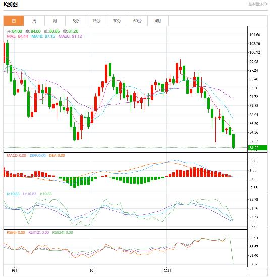 周一(11月28日),国际油价跌创11个月新低,全球疫情不确定性上升加剧了需求担忧。除非OC+同意进一步减产,或者美国重新增加战略储备,否则油价可能会进一步下跌。 北京时间16:28,YX原油期货下跌2.96%至74.02美元/桶;IC布伦特原油期货下跌2.96%至81.23美元/桶。两市分别创去年12月27日以来新低至