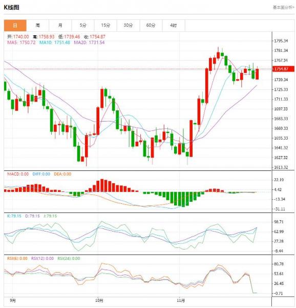 今日周一晚间,原油报80.98/81.00,黄金报1758.60/1758.90。周二(11月29日)亚洲时段,现货黄金震荡反弹,目前交投于1754美元/盎司附近,因亚洲股市反弹,提振风险偏好,打压美元,进而给金价提供反弹机会,不过,隔夜多位美联储官员的鹰派讲话,仍可能在短线限制金价的上涨空间。 另外,在美元