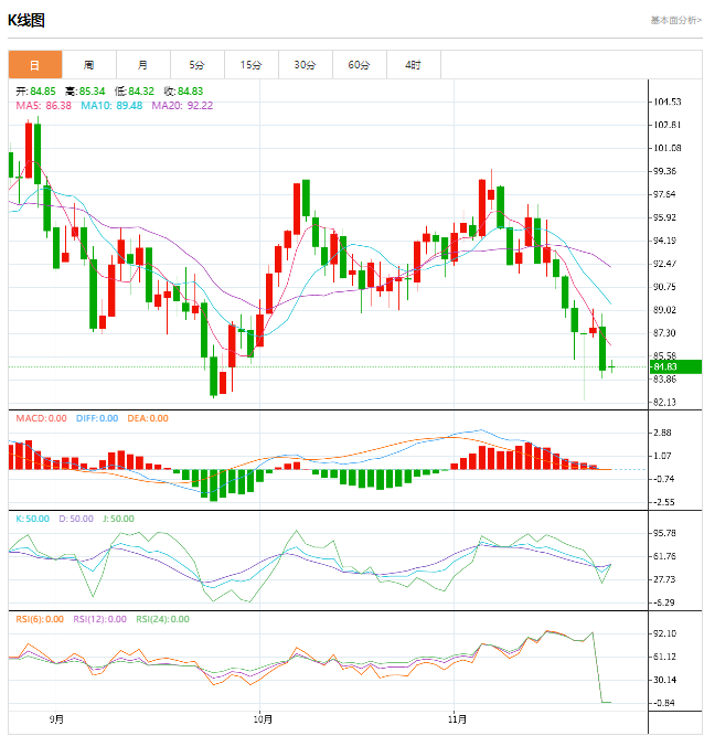 周三(11月23日),国际油价小幅走高,因行业数据显示上周美国原油下降幅度大于预期。俄罗斯如何回应七国集团(G7)对俄石油限价存在不确定性,这也为市场提供了一些支持。北京时间16:25,YX原油期货上涨0.91%至81.69美元/桶;IC布伦特原油期货上涨0.82%至88.42美元/桶。 美国石油协会(AI)最新公