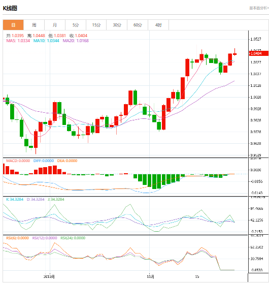 周一盘中,截止目前,欧元/美元货币对1.0487/1.0487,下降至0.0003,跌幅0.03%。欧元连续两日在反弹高位下方收录十字星,今日亚市早盘跳空低开,略偏下行。 货币对:欧元/美元 行情分析:汇价高见1.0493,低见1.0341。上一交易日,汇价收于1.0385。基本面上看,上周五英镑震荡下行,日