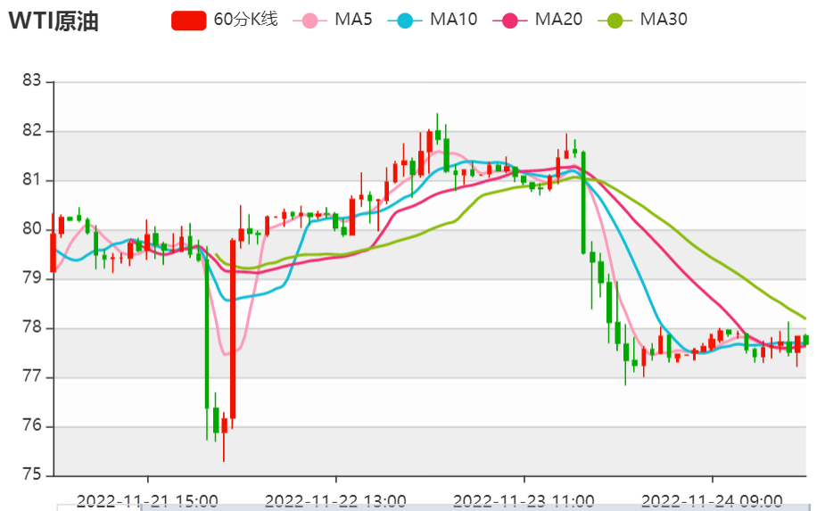 周四(11月24日),国际油价延续隔夜跌势,因为七国集团(G7)国家提议的俄罗斯石油价格上限范围高于当前交易水平,缓解了市场对潜在供应紧张的担忧。欧盟各国政府尚未就此价格区间达成一致,它们将在最近两天恢复谈判。 北京时间16:41,YX原油期货下沉0.21%至77.78美元/桶;IC布伦特原油期货下车0.18%