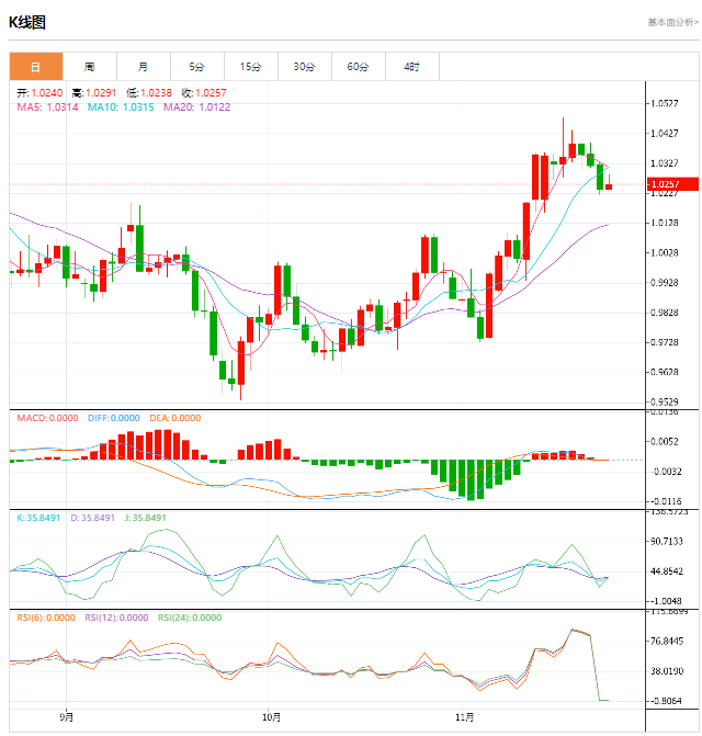 周三盘中,截止目前,欧元/美元货币对1.0317/1.0316,上升至0.0014,增幅0.14%%。欧洲央行管委、奥地利鹰派央行行长霍尔兹曼表示,欧洲央行需要在下次就加息投票时保持加息步伐,以让公众相信欧洲央行对抑制通胀是“认真的”。他支持在12月中旬利率制定会议上进行连续第三次的75基点加息,将基准借贷成本提高至2.25%