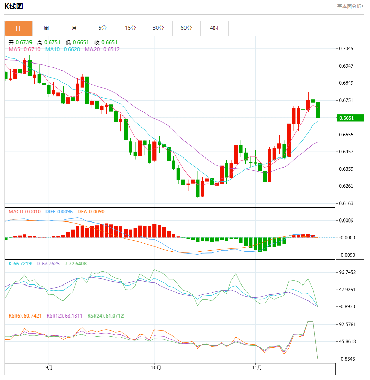 澳元周四大幅走低。欧洲时段,澳元/美元报0.6671,下跌1.02%。 就业数据大放异彩 澳大利亚紧俏的劳动力市场在10月份变得更加紧张。总就业人数从9月份的仅仅900人增加了32200人。这些数字尤其令人鼓舞,全职就业人数从之前的10900人增加了47100人。失业率为3.5%,已经在50%以下,小幅下降到