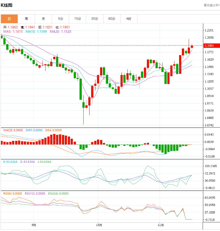 周三英镑走高。欧洲时段,英镑/美元报1.1934,上涨0.56%。英镑周二飙升,涨幅接近1%,三个月来首次突破1.20一线。 对于英镑来说,这是一段繁忙的时期,它的特点是剧烈波动,这会让这种异国情调的货币脸红。英镑的波动在11月份尤为明显。美元走势不稳,英镑充分利用,本月上涨3.5%。