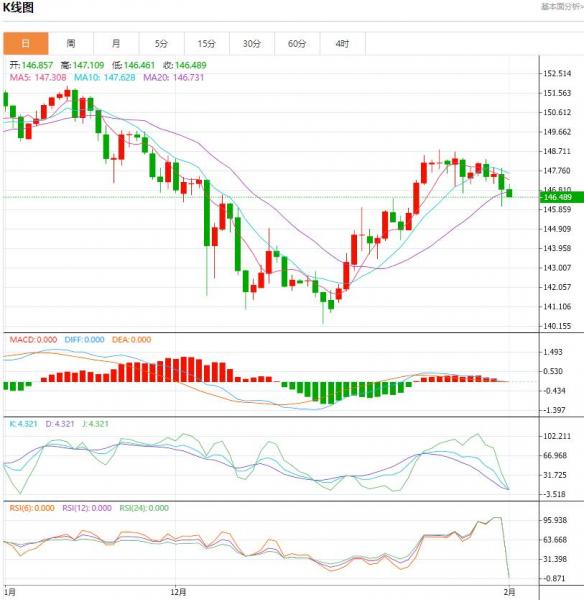 周四盘中,日元/美元下跌至-0.365点位,跌幅-0.23%。日本央行决策者在1月份讨论了近期退出负利率的可能性以及逐步退出该行大规模刺激计划的方案。 货币对:日元/美元 行情分析:汇价高见147.109,低见146.461。上一交易日,基本面上看:日本央行1月货币政策会议审议委员意见摘要显示,委员会成员在上周会