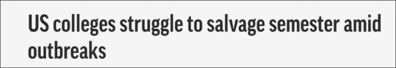 美国各大学在特朗普施压下纷纷复课,成为新冠疫情新爆点。美联社26日报道直指这当中的混乱:全美数千名返校大学生被困在宿舍接受隔离,有人悲观地形容自己处在“新冠监狱”,“迟早会感染”。还有师生代表、地方政府质疑并要求推翻复课决策,与校方产生矛盾。据美联社报道,自8月底复课以来,美国各地大学已经出现数
