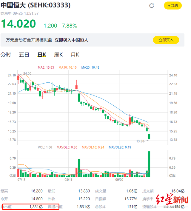 截至14点20分,中国恒大跌幅扩大,恒大汽车跌幅扩大到18%。恒大地产集团多只存续债均大跌。