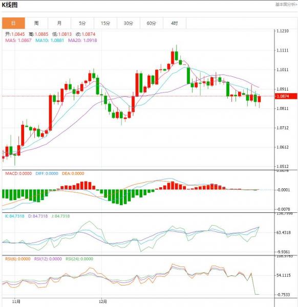周一盘中,欧元/美元下跌至-0.0044点位,跌幅-0.40%。欧元区货币市场已完全定价欧洲央行将于2024年4月进行首次降息,降息幅度为25个基点。 货币对:欧元/美元 行情分析:汇价高见1.0850,低见1.0808。上一交易日,基本面上看,上周五欧元震荡盘整,日线小幅收涨。除空头回补对汇价构成了一定的支撑外,美