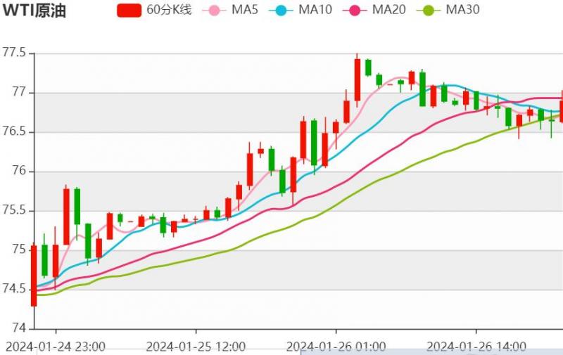 油价不再是困于窄幅波动区间,而是接下来油价能涨多高的问题。油价最终选择发力上攻,其中非常关键的变化是供需层面预期好转。 今日原油价格技术分析: 上一个交易日(1月26日),油价先跌后涨,到了晚间再次突破创新高。从上周周线看,油价收于中轨,形态看还要上涨,本周上方关注80的突破