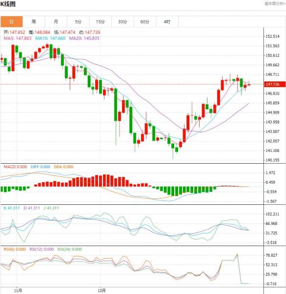 周一盘中,日元/美元下跌至-0.108点位,跌幅-0.07%。预计到今年年底,日元兑美元将升值至140,比目前的水平上升5%,但低于普遍预期的135。 货币对:日元/美元 行情分析:汇价高见148.331,低见147.705。上一交易日,基本面上看,日本央行12月货币政策会议纪要显示,政策制定者在上个月积极讨论了逐步取消