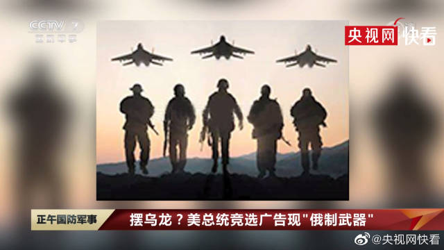 美国总统特朗普的竞选阵营制作一条广告,却疑似用错图片,出现“俄罗斯制造”而不是“美国制造”的武器。画面中,5名持枪军人的剪影一字排开,身后是群山,3架战机从头顶呼啸而过。画面上写着:支持我们的军队。美国《政治报》网站14日援引专业人士的话报道,那些战机是俄罗斯的米格-29。其中一名士兵手里的枪是大名鼎鼎