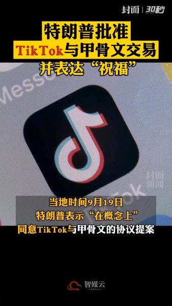 当地时间9月19日,美国总统特朗普表示,他“在概念上”同意抖音海外版TikTok与甲骨文的协议提案,并对协议议案表达了自己的“祝福”。当地时间14日,甲骨文证实已经与TikTok的母公司字节跳动达成协议,成为其“可信技术提供商”,但该协议仍需美国政府批准。此前美国商务部宣布:禁止在美国下载TikTok的禁令至少推迟到9