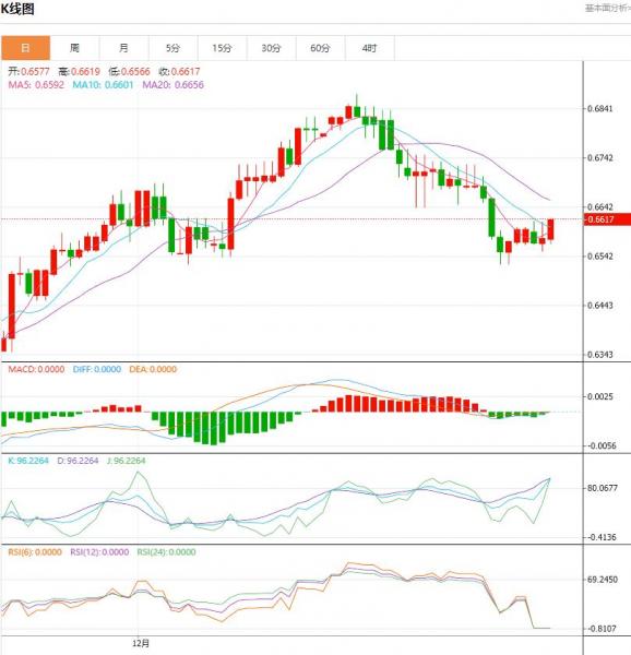 周四盘中,澳元/美元上升至0.0031点位,增幅0.48%。 货币对:澳元/美元 行情分析:汇价高见0.6607,低见0.6566。上一交易日,基本面上看,进入新的一年后,由于交易商推迟了对美联储首次降息的预期时间,美元一直表现坚挺,澳元则受压一路下行,目前勉强守护在0.65水平之上。周三日内,尽管中国宣布降准
