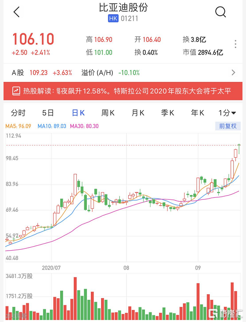 比亚迪股份(1211.HK)涨2.41%,报106.1港元,股价再创历史新高;比亚迪(002594.Z)则涨3.63%。比亚迪正式宋LU开卖,共推出四款车型,售价11.58至14.38万元人民币,该车款填补宋ro与唐之间的车型空白。中信证券(29.880-0.35-1.16%)研报表示,公司近期发生了两方面重要变化:首先,“汉”月销量爬坡进度超预期,有望成为