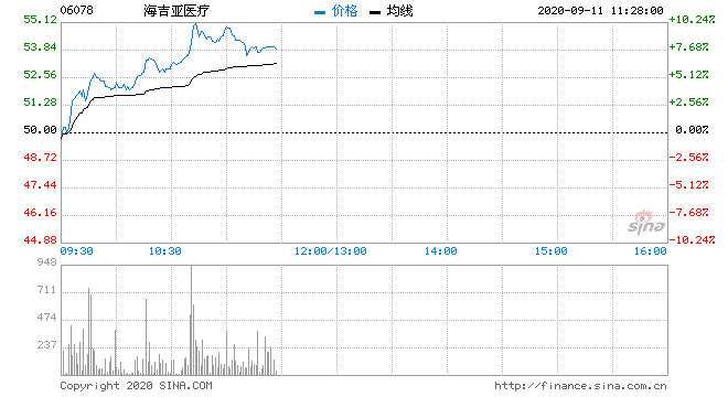 海吉亚医疗(53.93.907.80%)(06078)此前获深交所纳入港股通名单,并于本周一(9月7日)正式生效。此后北水资金持续流入,截至9月8日,港股通持股比例提升至1.76%。该股今日继续上扬,盘中高见55.25港元,刷新历史新高。上涨9.6%,报5.48港元,成交额7441.63万港元。