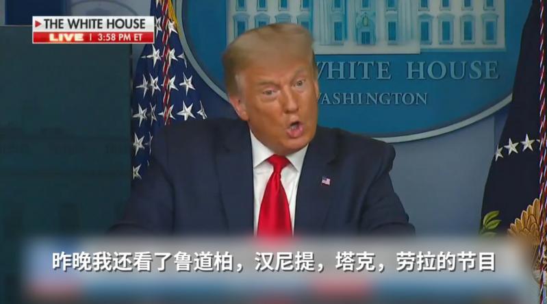 10日,特朗普在记者会上点名表扬多位福克斯新闻主播的节目,称他们为他提供了有关司法部对“通俄门”调查的主要信息来源。特朗普说:“昨晚我还看了鲁道柏,汉尼提,塔克,劳拉的节目,我今天早上看了《福克斯与朋友们》。”网友震惊:“先生,您这可是看了9个小时的电视啊1还有网友总结:“他整天做的就是发推特和看电