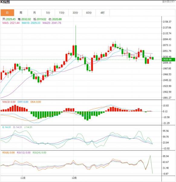 周一(1月22日),随着美元扳回早前跌幅,黄金承压下滑,目前交投在2020美元附近,市场等待本周关键事件的到来,包括日本央行及欧洲央行决议,美国GD以及C物价指数,本周美联储官员处于“噤声期”,投资者将从数据中寻找降息的线索。 今日黄金价格技术分析: 从技术角度来看,假如金价遭遇一些跟进卖盘