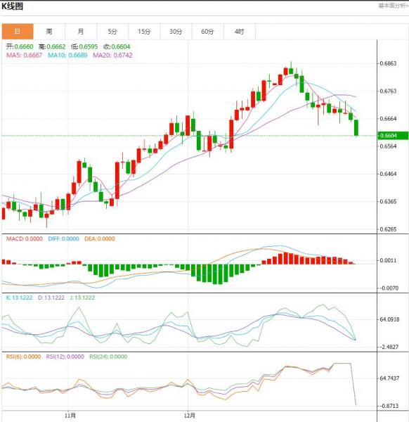 周二盘中,澳元/美元下跌至-0.0055(点位,跌幅-0.83%。澳元在上周一直表现疲软,即使在美国数据显示基本通胀率降温,市场加大了对最快在3月降息的押注之后,澳元表现也是如此。 货币对:澳元/美元 行情分析:汇价高见0.6662,低见0.6595。上一交易日,基本面上看,市场目前预计澳洲央行已经完成了紧缩政